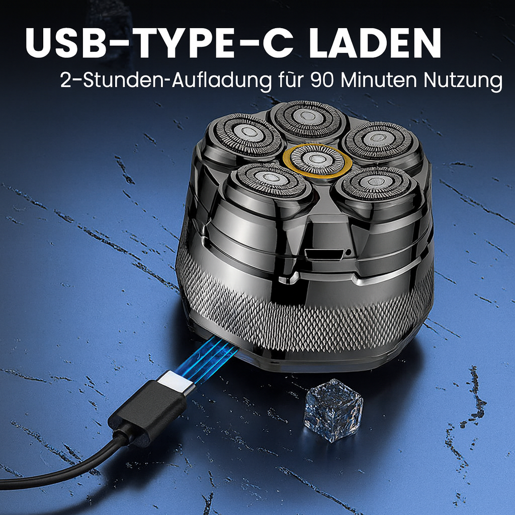 Dieser Rasierer wurde speziell für die Kopfrasur entwickelt und verfügt über sechs ultrascharfe Klingen, die zusammenarbeiten, um jedes Haar in einem sanften Durchgang zu erfassen und eine schnelle und komfortable Rasur zu ermöglichen, ohne Flecken zu übersehen.