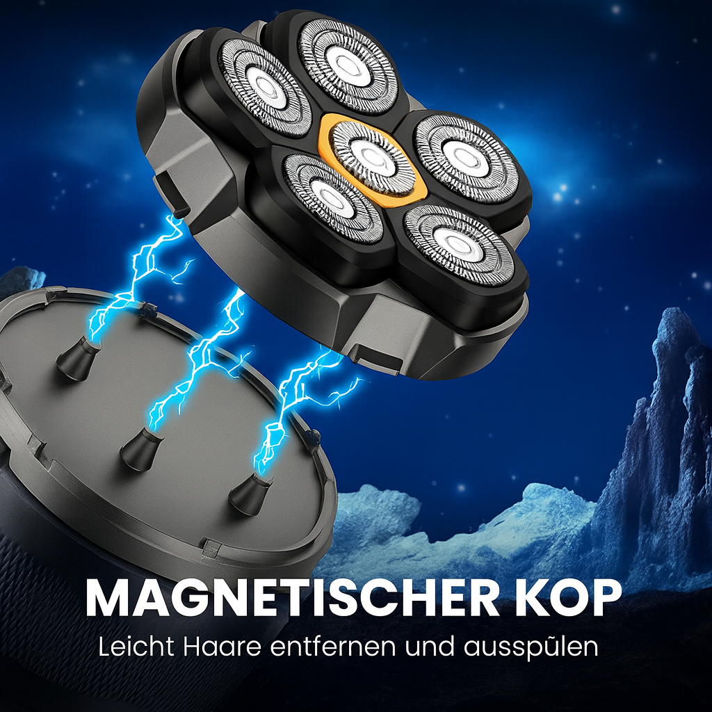 Das innovative magnetische Design ermöglicht eine mühelose Entnahme und Reinigung der Klinge. Nehmen Sie einfach den Scherkopf ab und spülen Sie die Haarreste weg, um maximale Hygiene und ein problemloses Reinigungserlebnis zu gewährleisten.
